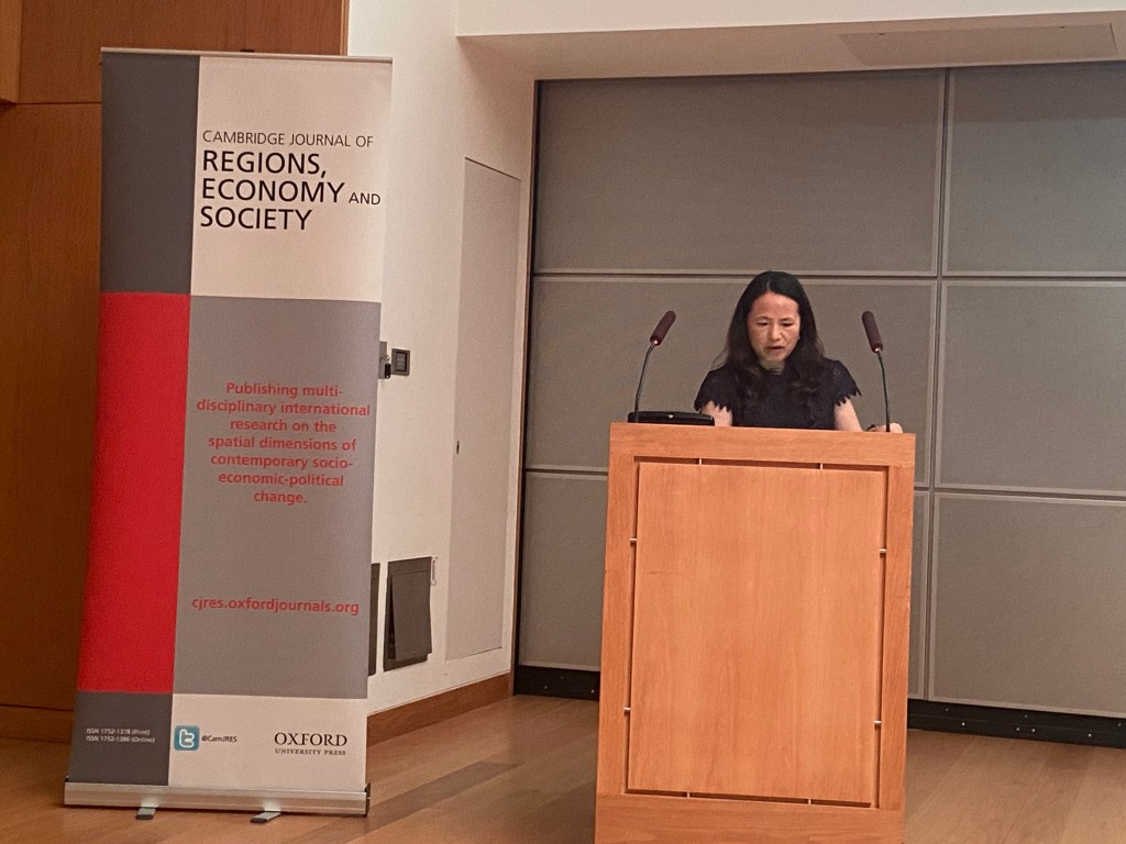 Funded by the ERC project, Prof. Fangzhu Zhang and Miss Handuo Deng participated in The Cambridge Journal of Regions, Economy and Society 2025 Conference at St Catharine’s College, Cambridge, UK, in 17-18 July 2025. They shared findings on Chinese climate statecraft based on investigations in Wuxi and Chengdu.