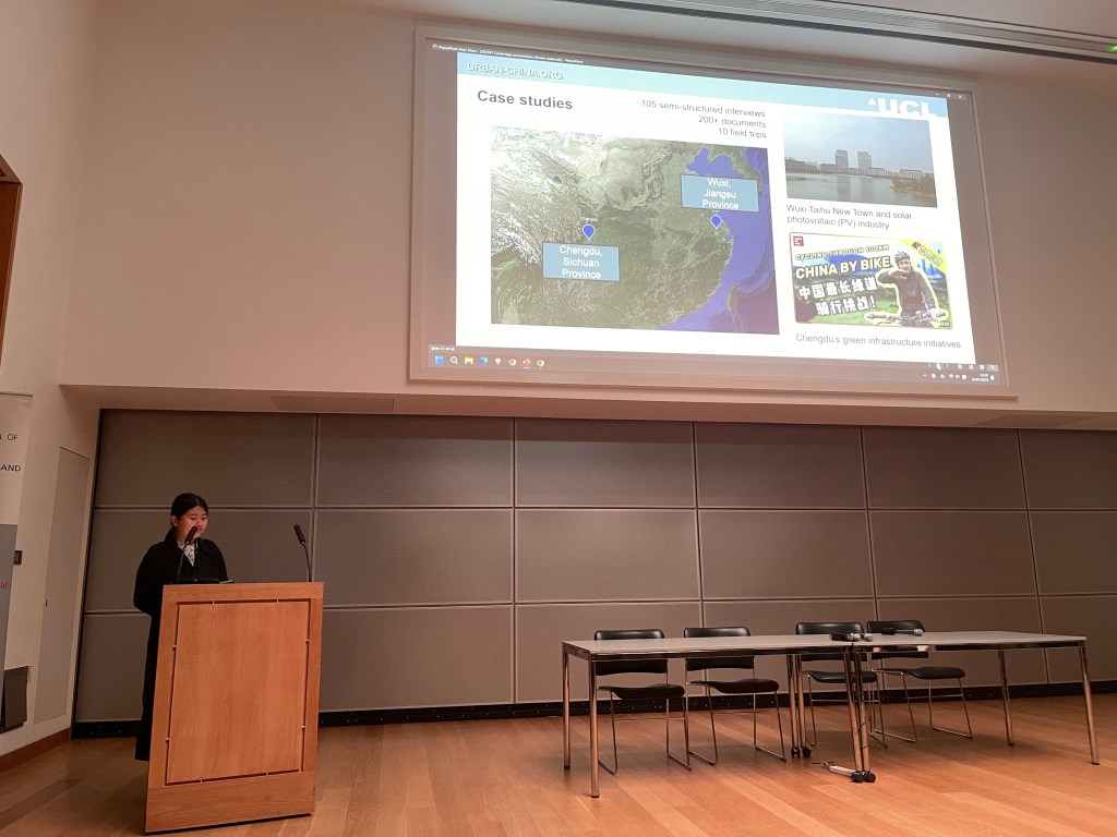 Prof. Fangzhu Zhang and Handuo Deng presented their collaborative research (with Prof. Fulong Wu) entitled ‘Chinese climate statecraft: governing low-carbon transitions in urban China.’