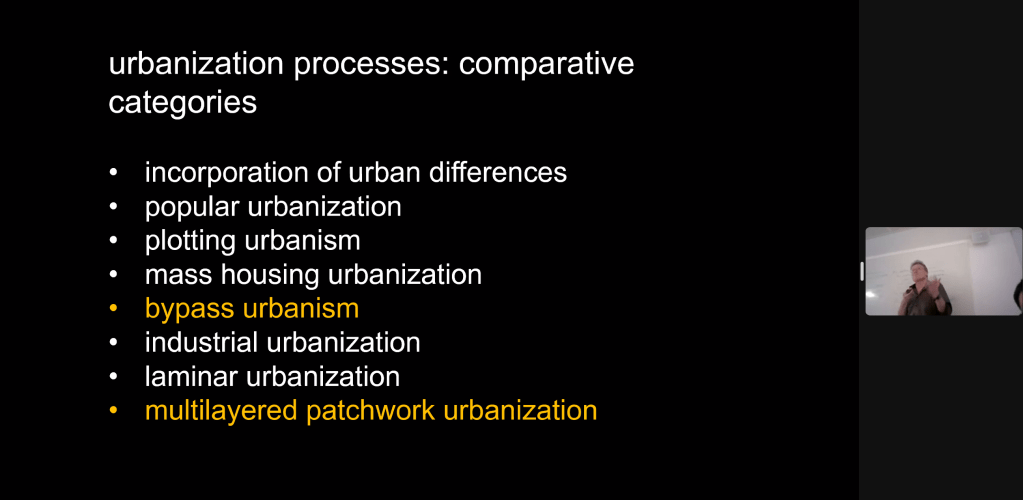 Prof. Christian Schmid proposed a comparative perspective in understanding urban peripheries. Through identifying urbanisation processes in various cities, he noticed various comparative categories in urbanization processes. He explained two categories in detail: bypass urbanism and multi-layered patchwork urbanization.